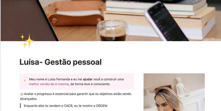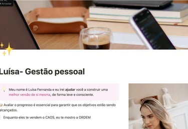 Luísa é especialista em organização e produtividade, e está aqui para ajudar você a dar o primeiro passo rumo a uma rotina mais leve, estruturada e eficiente.